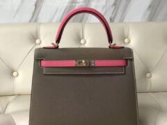 エルメスカラーブロッキングケリーバッグエルメスオリジナルパームグレイン牛革CK18エレファントグレー/8WリップスティックパウダーKelly25CMゴールドバックル