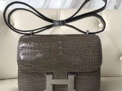 エルメスバッグ公式サイトエルメスCK81タートルドーブグレーの光沢のあるクロコダイルレザーConstance18CMシルバーバックル
