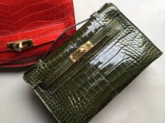 エルメスエルメスシャイニークロコダイルレザーミニケリーバッグMinikelly22CMV6オリーブグリーンゴールドバックル
