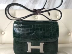 エルメスバッグカスタムエルメスシャイニークロコダイルレザースチュワーデスバッグConstance18CMCK67エメラルドシルバーバックル