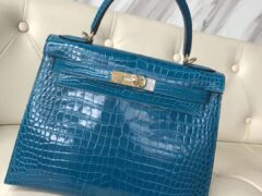 エルメスケリーバッグエルメスケリー28CM7Wイズミールブルーシャイニークロコダイルレザーゴールドバックル