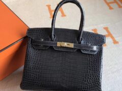 エルメスバーキン25CMエルメスブラックグロスインバーテッドVベイクロコダイルレザーバーキンシルバーバックル