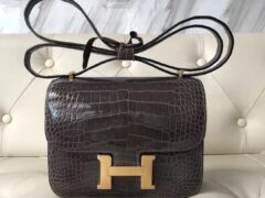 エルメスコンスタンス18CMエルメスCK88グラファイトグレー光沢のあるクロコダイルレザーコンスタンスバッグゴールドバックル