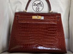 エルメスケリー28CMエルメスCK31ハニーブラウンシャイニークロコダイルレザーケリーバッグゴールドバックル