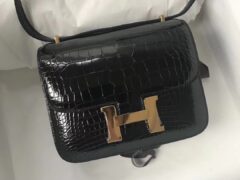 エルメススチュワーデスバッグ価格エルメスコンスタンス19CMCK89ブラックシャイニークロコダイルレザーゴールドバックル