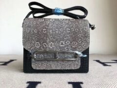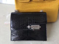 エルメスVerrou17cmエルメスCK89ブラックシャイニークロコダイルレザーピストルバッグシルバーバックル