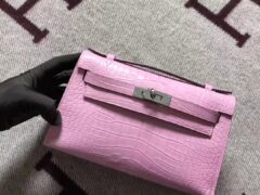 エルメスミニケリー22CMエルメスチェリーブロッサムパウダーマットクロコダイルレザーミニケリーバッグクラッチ