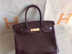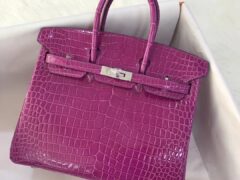 エルメスバーキン25CMエルメスローズパープルグロスベイクロコダイルレザープラチナバッグシルバーバックル