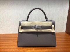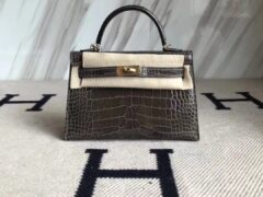 エルメスミニケリー-2エルメスCK88グラファイトグレー輸入光沢クロコダイルレザーミニケリーバッグ2世代ゴールドバックル