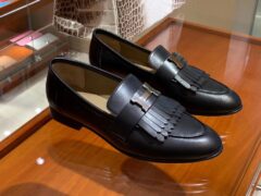 エルメスレディースシューズ価格エルメス18秋冬新作ブラックシープスキンコーヒーボトムタッセルフラットシューズローファー35-41