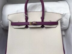 エルメスカラーブロックプラチナバッグエルメスバーキン25CMCK10ミルクシェイクホワイト/P9アネモネパープルゴールドバックル