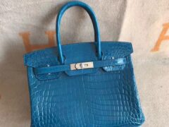 エルメスバーキンバッグ価格エルメス7Wイズミールブルーツーポイントクロコダイルレザーバーキンレディースバッグ30cmシルバーバックル