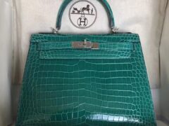 エルメスケリーバッグサイズエルメスケリー28CM光沢のあるクロコダイルスキンケリーバッグ6Qエメラルドグリーンシルバーバックル