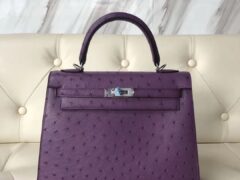 エルメスケリー25CMエルメスP9アネモネパープルトップオーストリッチレザーケリーバッグアウターシームシルバーバックル