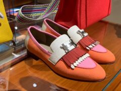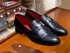 エルメス18秋冬新作ローファーシューズエルメスカラーブロッキングスエードHバックルタッセルフラットレディースシングルシューズ35〜41