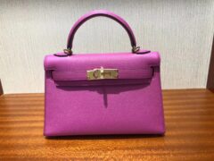 エルメスクラッチバッグエルメスミニケリー-2オリジナルパームグレイン牛革ミニケリーバッグ2世代9Iマグノリアピンクゴールドバックル