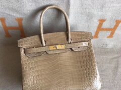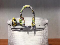 エルメスバーキン25CMヒマラヤオリジナルクロコダイルレザーシルバーバックル