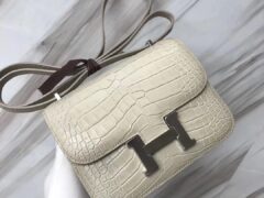 エルメスコンスタンスバッグサイズエルメスコンスタンス18CM8Lクリームホワイトマットクロコダイルレザーシルバーバックル