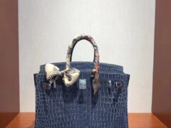 エルメスバーキン25cmN7ストームブルーシャイニークロコダイルレザーシルバーバックル