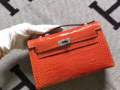 ハンドメイドエルメスエルメスオレンジシャイニークロコダイルレザーミニケリーバッグミニケリー22cmシルバーバックル