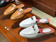 エルメスレディースシングルシューズエルメスシープスキン18秋冬新作ミニケリーバックルフラットスリッパホワイト