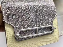 エルメスの新しいショルダーバッグエルメスRoulis18CM01プライマリカラートカゲの皮とクリーム色の白いクロコダイルの皮豚の鼻バッグシルバーバックル