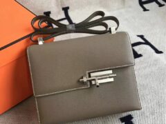 エルメスピストルバッグエルメスVerrou23cmCK18エレファントグレーパームグレイン牛革シルバーバックル