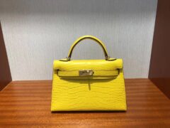 エルメスミニケリーバッグ2世代エルメスミニケリー-29Dアンバーイエローマットクロコダイルレザーゴールドバックル