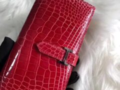 エルメスウォレット価格エルメスベアンスーツクリップチャイナレッドシャイニークロコダイルレザーウォレットシルバーバックル