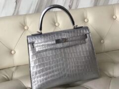 エルメスケリー25CMエルメスシルバートップクロコダイルレザーケリーバッグケリーバッグシルバーバックル