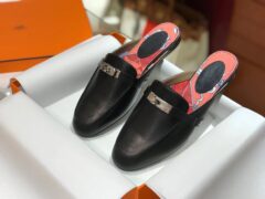 エルメス18秋冬新作レディースシューズエルメスミニケリーバックルケリーフラットスリッパブラック