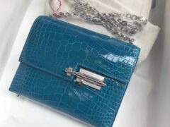 エルメスピストルバッグエルメスVerrou17CM7Wイズミールブルーオリジナルシャイニークロコダイルレザーシルバーバックル