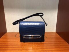 エルメスカラーブロッキングピッグノーズバッグエルメスルーリス18CMマルタブルーとサファイアブルークロコダイルレザーシルバーバックル