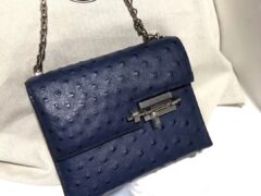 エルメスVerrou17CMエルメスCK73サファイアブルーKKオーストリッチレザーピストルバッグクロスボディワンショルダーウィメンズバッグシルバーバックル