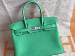 エルメスバーキン30プラチナバッグエルメス1Kバンブーグリーントーゴカーフスキンハンドバッグシルバーバックル