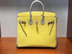 エルメスバーキン25CMエルメスマットクロコダイルレザープラチナバッグ9Rレモンイエローと8Lクリームプラチナバックル