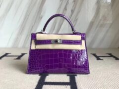 エルメスミニケリー-25Lエクストリームパープルシャイニークロコダイルレザーシルバーバックル