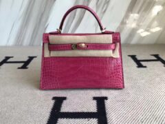 エルメスミニケリークラッチエルメスシャイニークロコダイルレザーミニケリーバッグ2ジェネレーション5Jピーチピンクゴールドバックル