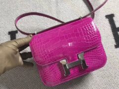 エルメスクロコダイルスキンスチュワーデスバッグエルメスコンスタンス19CMJ5アラビアンナイトピンクパープルシャイニークロコダイルレザーシルバーバックル