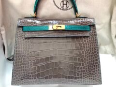 エルメスカラーブロックケリーバッグエルメスオリジナルシャイニークロコダイルレザーケリーバッグ25CMゴールドバックル
