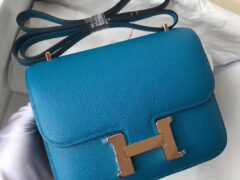 エルメスカラーブロックスチュワーデスバッグエルメスコンスタンス18CM7Wイズミールブルーベルベットグリーンローズゴールドバックル付き