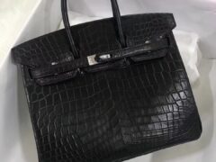 エルメスバーキンバッグエルメスブラックマットクロコダイルレザープラチナバッグBirkin25CMシルバーバックル