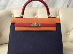 エルメスカラーブロッキングケリーバッグエルメス3色マッチングオリジナルロイヤルエプソムレザーKelly25CMゴールドバックル