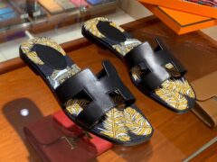 エルメススリッパカスタムエルメスカウンター新品キャンバススリッパHブラックレザー35〜41ヤード