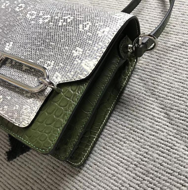 ブランド:エルメス;スタイル:ルーリスピッグノーズバッグ;素材:オリジナルロイヤルリザードスキンとアメリカンクロコダイルスキン;カラー:01プライマリーカラースモールヒマラヤ/フォレストグリーン;サイズ:18cm;ハードウェア:シルバーバックル;アクセサリー:ダストバッグ;使用法:ショルダーバッグ、メッセンジャーバッグ