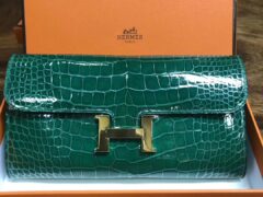 エルメスイブニングクラッチエルメス6Qエメラルドグリーン光沢のあるクロコダイルレザーコンスタンスコンスタンスウォレットゴールドバックル