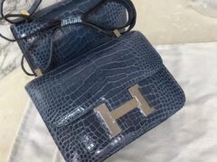 エルメススチュワーデスバッグサイズエルメスコンスタンス18CM7Nストームブルーシャイニークロコダイルレザーシルバーバックル