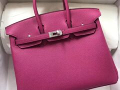 エルメスバーキンバッグエルメスオリジナルカーフスキンL3ローズパープルプラチナバッグBirkin25CMシルバーバックル