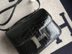 エルメススチュワーデスバッグ価格エルメスコンスタンス19CMCK89ブラックシャイニークロコダイルレザーシルバーバックル
