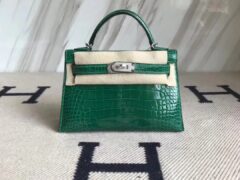エルメスミニケリーバッグ2世代ヘメスミニケリー-26Qエメラルドグリーンシャイニークロコダイルレザーシルバーバックル